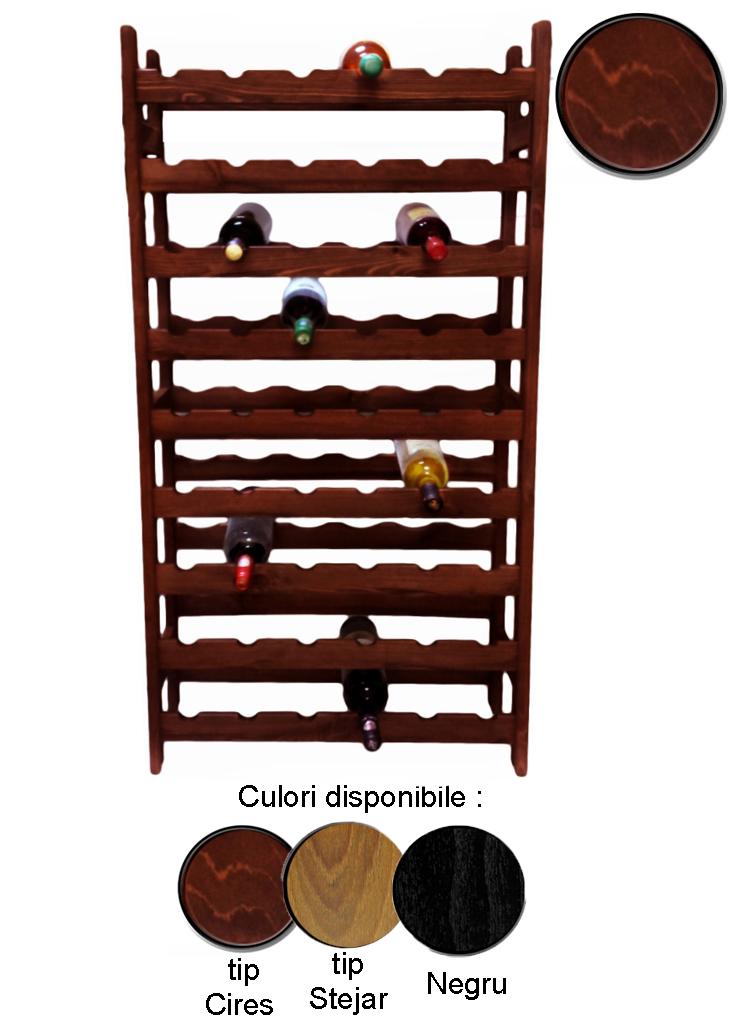 Aroma boabelor de struguri imbuteliata gaseste in raftul decorativ cu forma dreptunghiulara un camin primitor. Rastelul din lemn este confectionat pentru a depozita 54 de sticle de vin. Fiind tratat cu o rasina speciala, raftul este rezistent la umiditate.