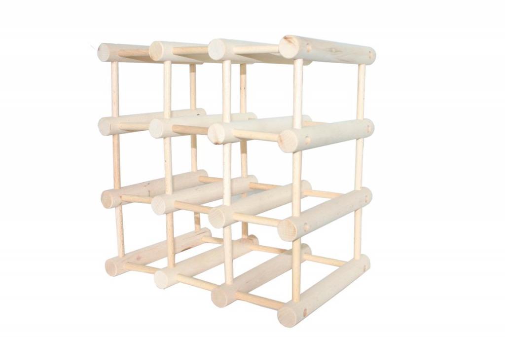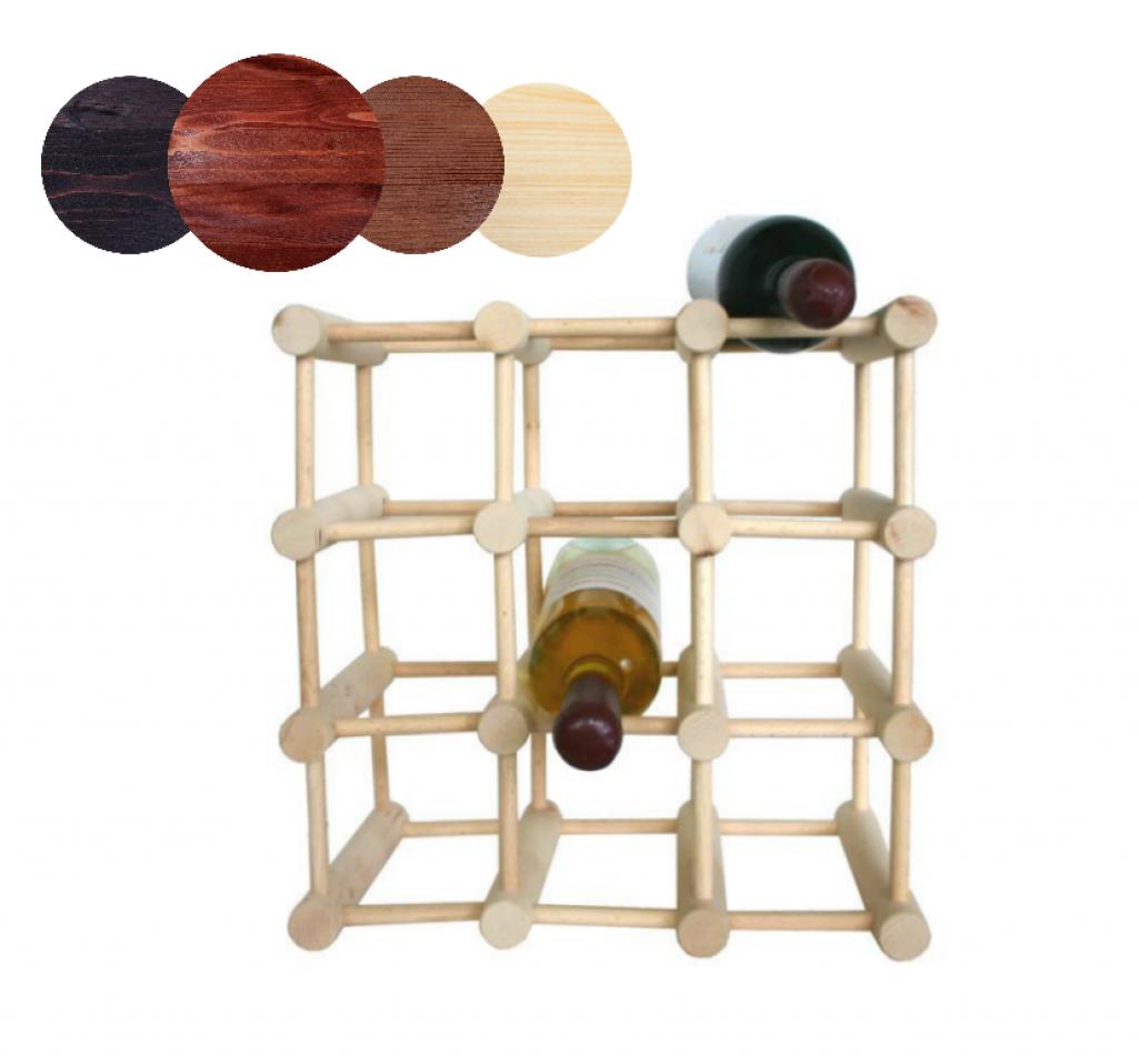 Raft modular din lemn pentru stocarea a 12 sticle de vin.